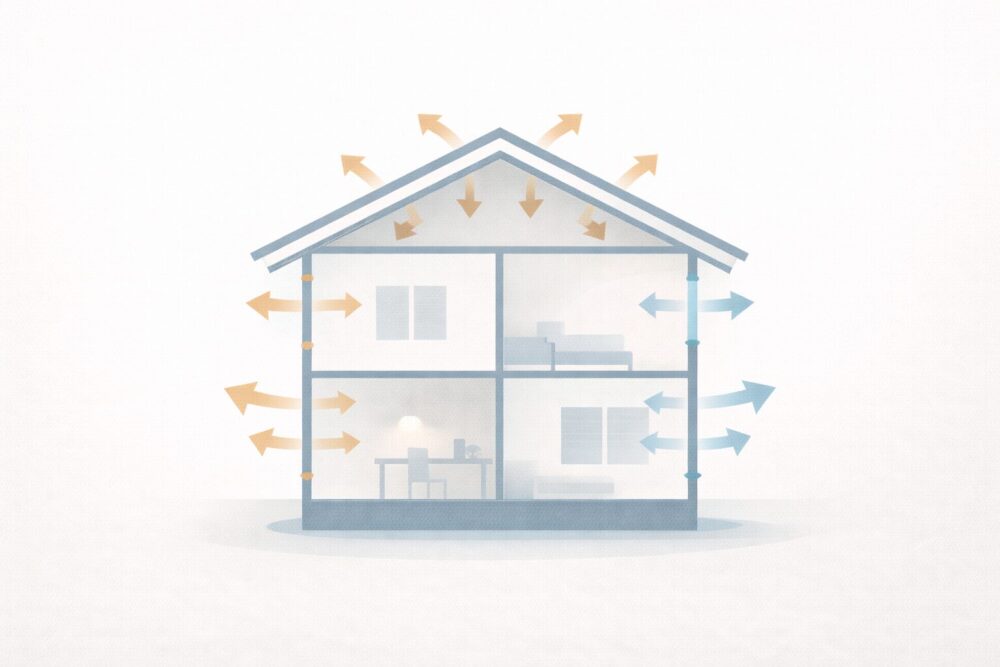 UA値は、家全体がどれくらい熱を通しやすいかを一つの数字にまとめます。